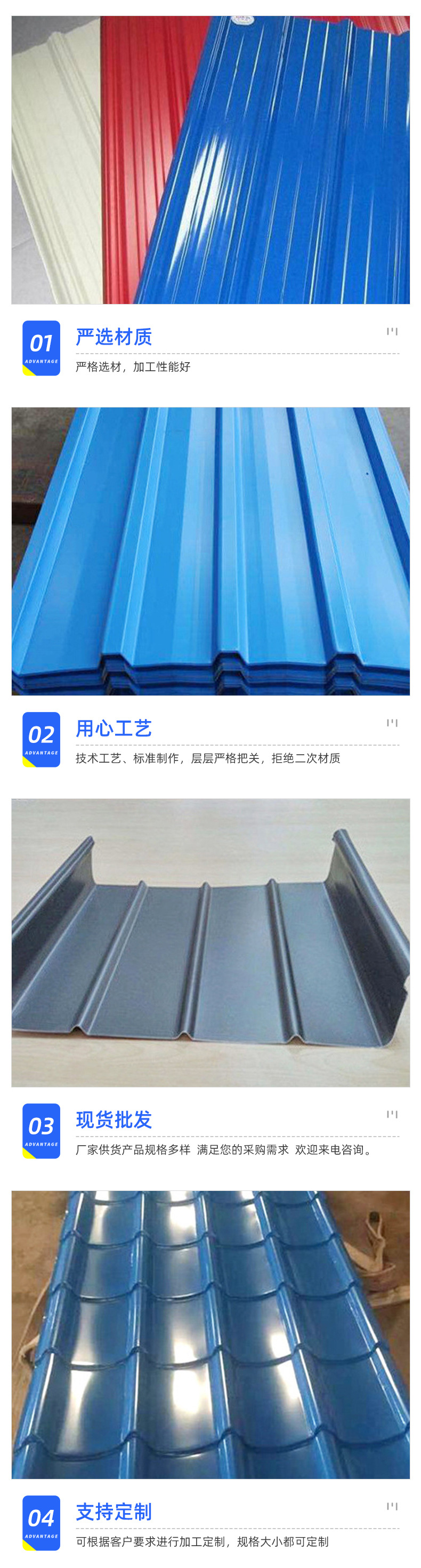 彩鋼瓦單層鐵皮瓦 壓型彩鋼板 廠房屋頂用波浪瓦彩鋼瓦